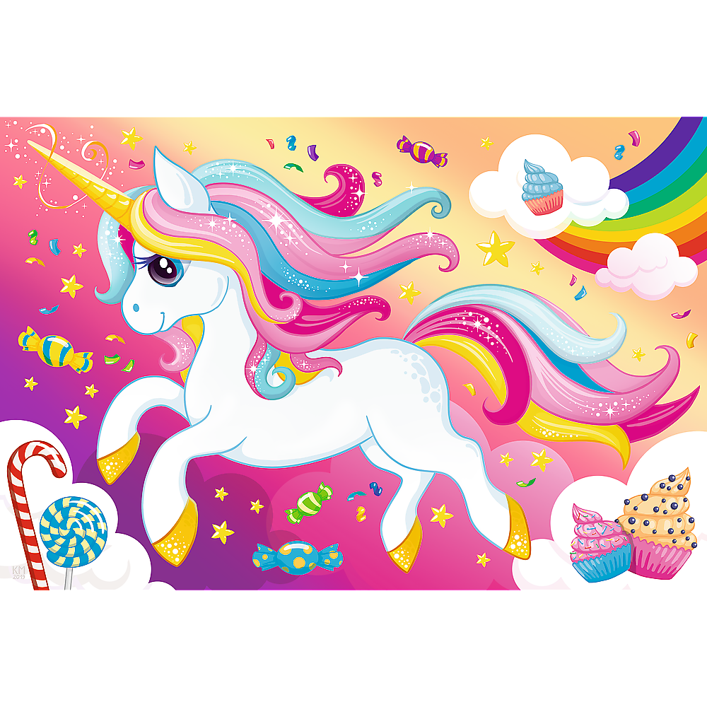 Puzzle składające się ze 100 elementów, zaprojektowane z myślą o wszystkich miłośniczkach i miłośnikach słodkich jednorożców. Po ułożeniu układanki powstanie obrazek o wymiarach 410x278 mm.