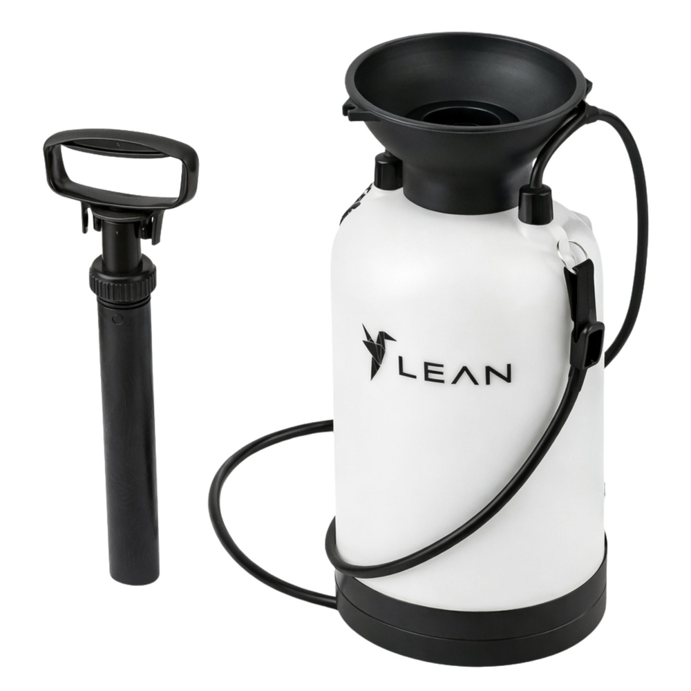 - Opryskiwacz ciśnieniowy ręczny LEAN 5L to solidne i funkcjonalne narzędzie przeznaczone do precyzyjnego opryskiwania roślin, podlewania, nawożenia oraz aplikacji środków ochrony roślin.
