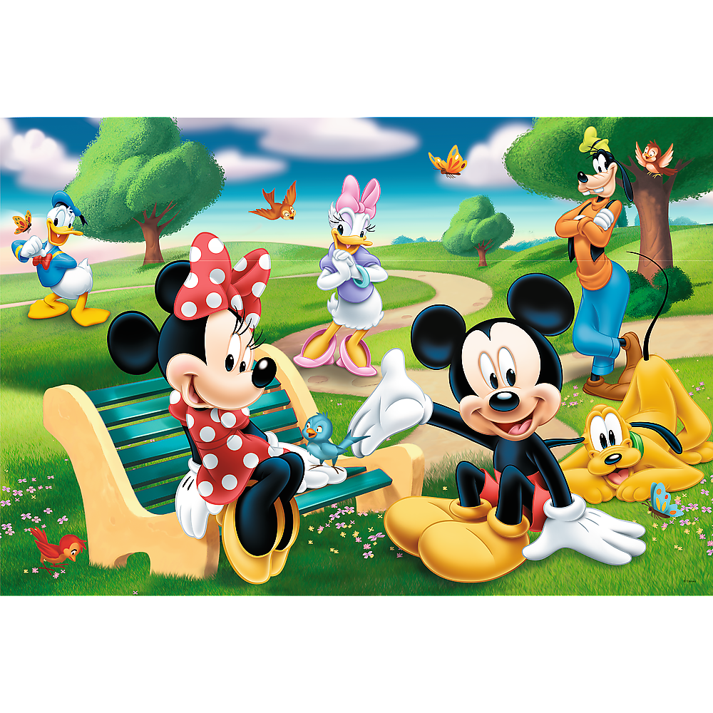 Myszka Miki w gronie przyjaciół to puzzle składające się z 24 MAXI elementów, zaprojektowane z myślą o fanach kultowej bajki Myszka Miki. Po ułożeniu powstanie obrazek o wymiarach 600x400 mm.