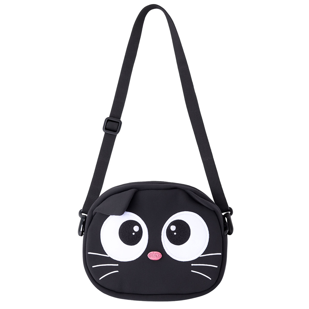 - Torba saszetka kot czarny to praktyczny i stylowy dodatek, który idealnie sprawdzi się podczas codziennych aktywności. Wyróżnia ją uroczy design w formie czarnego kotka z dużymi, haftowanymi oczami i słodkim różowym noskiem.