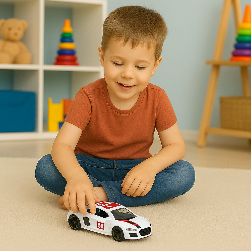 Metalowy samochód sportowy w skali 1:43 to realistycznie odwzorowany model, stworzony z myślą o dzieciach uwielbiających zabawę pojazdami oraz o kolekcjonerach ceniących estetyczne wykonanie. Zabawka wykonana została z wysokiej jakości metalu, co zapewnia jej trwałość oraz atrakcyjny wygląd zbliżony do prawdziwego auta wyścigowego. Biała karoseria z czerwonymi elementami nadaje modelowi dynamicznego charakteru, a otwierane drzwi dodatkowo zwiększają realizm zabawy i pozwalają dzieciom odgrywać różne sceny.