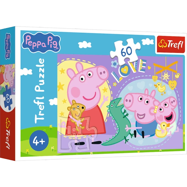 Szczęśliwa świnka to puzzle składające się z 60 elementów, zaprojektowane z myślą o małych fanach bajki Świnka Peppa. Po ułożeniu układanki powstanie obrazek o wymiarach 330x220 mm.