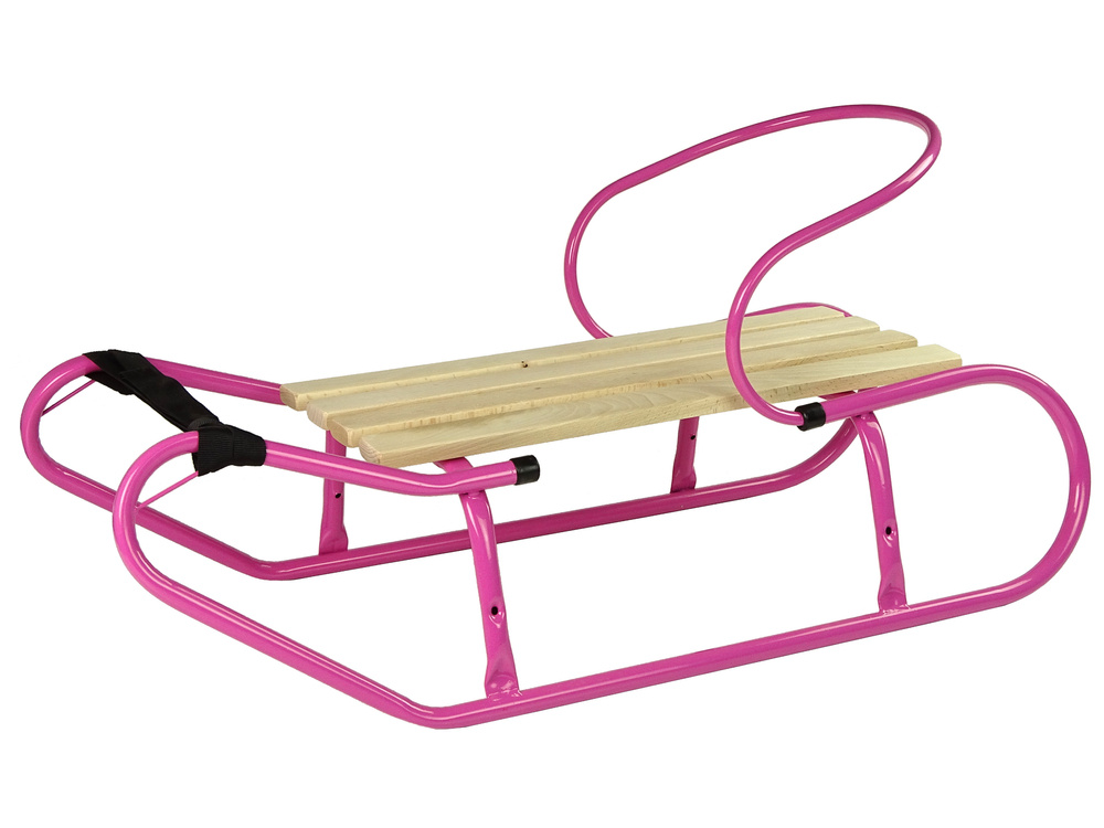 Mocny i szeroki pasek umożliwia ciągnięcie maluchów po śniegu. Oparcie sprawia, że z sanek korzystać mogą także najmłodsze dzieci, bez ryzyka wypadnięcia z nich.