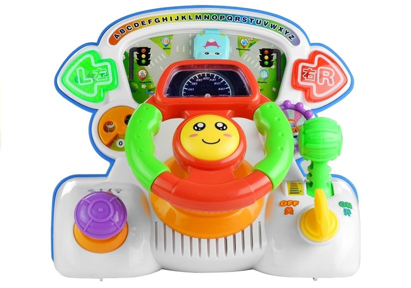 Wszystkie maluszki uwielbiają zabawki, które są bardzo kolorowe i składają się z wielu elementów o różnych kształtach. Zabawa jest jeszcze lepsza, kiedy dotknięcie wybranego elementu skutkuje załączeniem kolorowych światełek, a nawet wesołych dźwięków. Wszystkie te wymagania spełnia prezentowana kierownica umieszczona na desce rozdzielczej. Dziecięce wzornictwo nawiązujące do wyglądu realistycznej kierownicy zwieńczone jest różnokolorowymi dodatkami, co z pewnością zaabsorbuje i przyciągnie uwagę każdego malucha.
