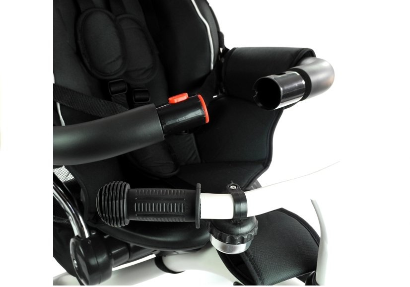 Uniwersalna forma pomarańczowego rowerka dla dzieci sprawia, że wraz z rozwojem umiejętności malucha, a także zmianą jego wzrostu, można odpinać poszczególne elementy, by zmienić jego układ. W jaki sposób to zrobić? W pierwszym etapie polecamy korzystanie ze wszystkich elementów konstrukcji wózeczka, natomiast wraz z upływem czasu można demontować wyściełane siedzisko, pasy bezpieczeństwa, boczne, piankowe belki czy daszek, a także przesuwać podnóżek do przodu, by ostatecznie odczepić go na rzecz pedałków.