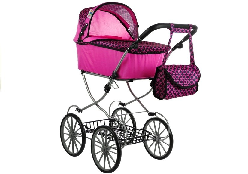 Skąpany w połączeniu różu i czerni retro wózek jest doskonały w swej prostocie. Nie rozprasza wieloma kolorami, pozwalając skupić się na zabawie w opiekę nad zabawkowym bobasem. Wózek jest rewelacyjnym gadżetem urozmaicającym zabawę w dom, dzięki niemu każda opiekuńcza i troskliwa mamusia będzie mogła przyjemnie spędzać czas ze swoją lalką i zabawkami nawet poza domem. Dużym ułatwieniem jest koszyk, znajdujący się w dolnej części konstrukcji, a także zapinana na rzep torba, umożliwiające przechowywanie i transport potrzebnych podczas zabawy elementów, na przykład ubranek dla bobaska albo buteleczki. Zabawa z wykorzystaniem retro wózeczka na lalki to nie tylko przyciągający wzrok design — posiada również wymiar edukacyjny.