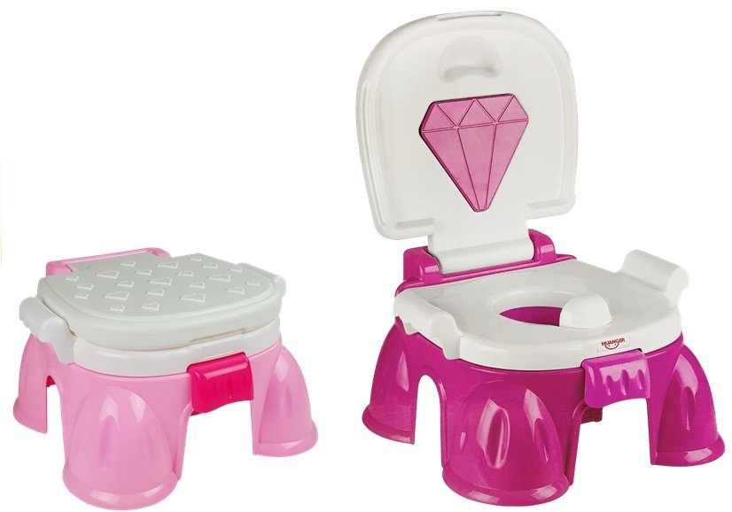 - podestu z antypoślizgową powłoką, która ułatwi dziecku dosięgnięcie do umywalki bądź szafek w łazience, a także będzie rewelacyjnym przedmiotem pomocnym podczas korzystania z pełnowymiarowej toalety — wystarczy opuścić klapę nocnika, by zamienić go w rewelacyjną podstawkę,