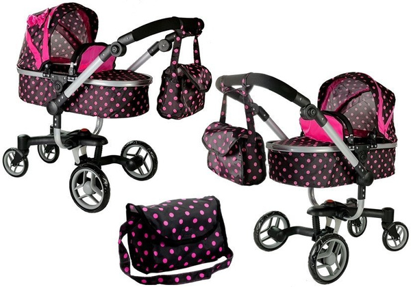 Wózek dla Lalek Alice Czarny w Różowe Groszki
