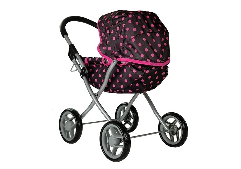 Wózek dla lalek Alice czarny w różowe groszki