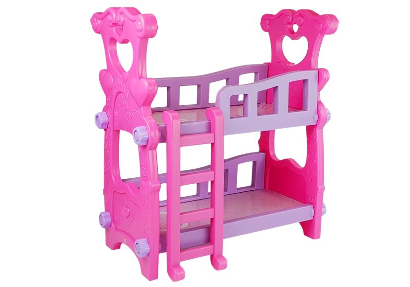 Teraz dziewczynka, jak prawdziwa mama może zająć się swoim maleństwem! Piętrowe łóżko dla lalek to idealna zabawka dla dziewczynek lubiących zabawę w dom. Już dziś ulubione lalki będą mogły spać razem. Prosty system składania oraz lekka konstrukcja to główne zalety naszej zabawki. Spraw, by Twoje dziecko już od najmłodszych lat uczyło się delikatności i troski wobec swych najbliższych. Zabawa z wykorzystaniem prezentowanego łóżeczka z pewnością sprawi, że każda dziewczynka lubiąca zabawę w dom poczuje się jak opiekuńcza mamusia. Urocze łóżeczko będzie doskonałym urozmaiceniem każdej zabawy, a ponadto rewelacyjnie będzie się prezentować w każdym dziecięcym pokoju. Wzornictwo zabawkowego łóżeczka aż do złudzenia przypomina pełnowymiarowe łózko dla malucha. Różowo-fioletowe elementy posiadają przepiękne dodatki, takie jak żłobione ornamenty czy serduszka na barierkach. Łóżeczko jest bardzo proste w montażu, jednak odznacza się solidnością i trwałością. Jesteśmy przekonani, że swą cukierkową kolorystyką zwróci uwagę każdej małej dziewczynki, która uwielbia wcielać się w rolę mamusi.