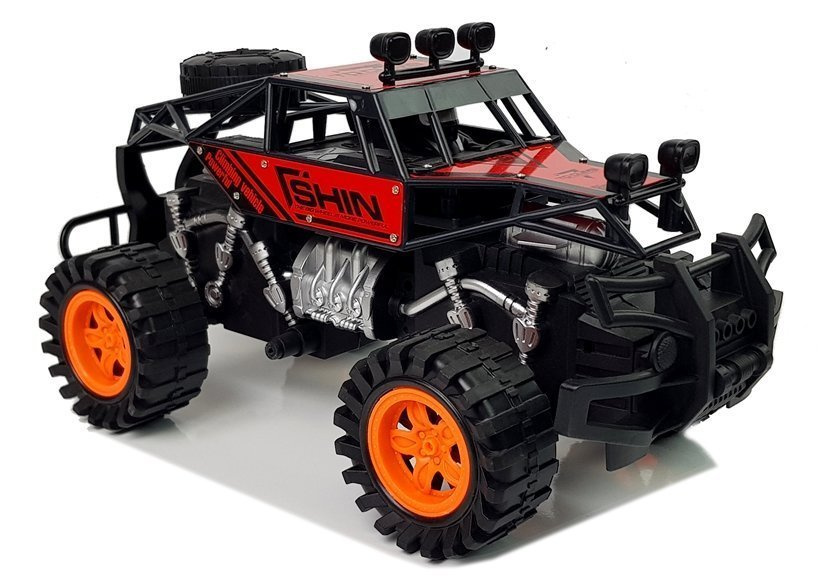 Pojazd posiada masywną, terenową konstrukcję, ogromne koła z elementami pomarańczowego odznaczają się z daleka i dają wrażenie potęgi auta. Auto ma realistyczny wygląd, posiada dobrze zbudowany silnik, we wnętrzu samochodu są pokazane małe elementy, które niezbędne są do takich podróży. Na tyle na rusztowaniu zamontowany jest dodatkowe koło co przy usterce samochodu, zawsze się przyda. Dodatkowy plusem jest naciąg, dzięki któremu wystarczy nacisnąć auto z tyłu, puścić i obserwować rozwijającą się prędkość.