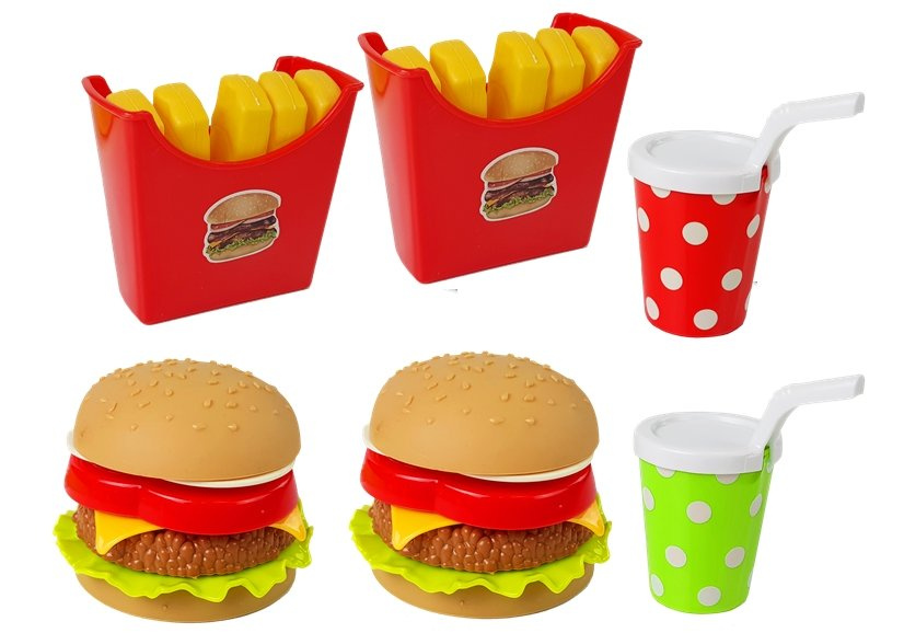 W naszym zestawie kuchennym znajduje się wszystko, czego potrzebuje Twoja pociecha aby zaspokoić swój głód. Może patrząc na te smakołyki również skusisz się na wspólną zabawę! W zestawie znajdują się bardzo przydatne składniki do przygotowania przez małego kucharza. Największą frajdę podczas zabawy daje składanie składników na stworzenie pysznego, zdrowego hamburgera. Elementy zestawu pozwolą dziecku na przygotowanie dań dla dwóch osób.