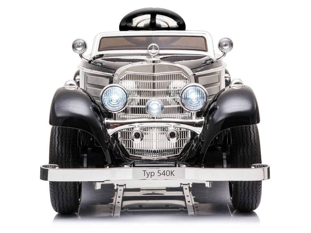 Zminiaturyzowana wersja retro Mercedesa to nie tylko fantastyczny wygląd. Auto pod swą „maską” ukrywa silniki 4x45W oraz akumulator 12V10Ah, dzięki którym kilkuletni kierowca może podróżować z prędkością od 5 do 7 km/h. Do zestawu dołączono innowacyjny pilot 2.4G, umożliwiający zdalne sterowanie autkiem. W budowie pilota umieszczono przyciski pozwalające na wybór kierunku: prawo/lewo, przód/tył, a także wybór prędkości oraz awaryjne, natychmiastowe zatrzymanie. Rozwiązanie to sprawia, że z Mercedesa 540K mogą korzystać także młodsze dzieciaki, jeżdżąc w sterowanym przez opiekunów pojeździe.
