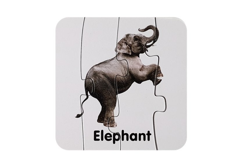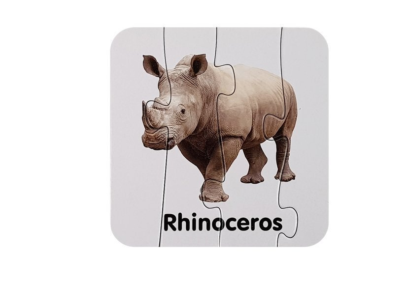Łamigłówki edukacyjne będą dobrym ćwiczeniem dla wyobraźni, poszerzą wiedzę oraz ćwiczą cierpliwość. Całość będzie procentować w przyszłości u dziecka. Poprzez dopasowanie kształtów puzzli dowie się, jak wyglądają zwierzęta zamieszkujące min. Afrykę. Każde ze zwierząt mają podpis w języku angielskim, dzięki czemu pozna podstawowe słówka. Z wszystkich puzzli można stworzyć aż 10 połączeń. Na układance można zobaczyć min. żyrafę, lwa, nosorożca.