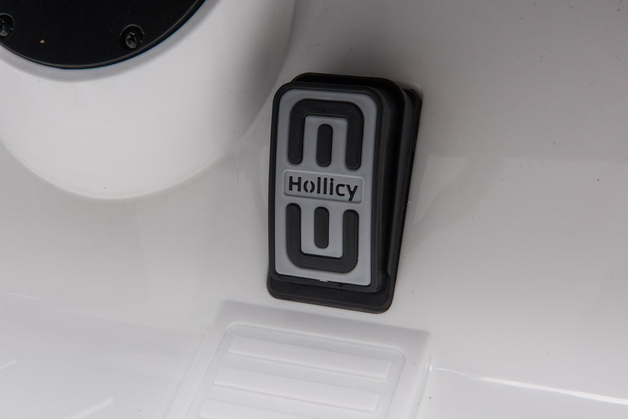 Wnętrze autka również inspirowane jest pełnowymiarowym pojazdem dla kierowców kochających prędkość. To fuzja sportowego stylu, minimalizmu i funkcjonalności. Czarny fotel z licznymi detalami został wykonany jest z miękkiej ekoskóry, co w dużym stopniu podnosi komfort zabawy, natomiast obrotowa kierownica z klaksonem swym wymiarem i wagą dostosowana jest do rąk kilkulatków, by zapewnić im łatwość manewrowania i omijania przeszkód. Na ciemnym kokpicie umieszczono świecącą imitację prędkościomierza i obrotomierza. W lewej części kokpitu znajduje się panel muzyczny - w jego obudowie znajdują się przyciski pozwalające na zmianę piosenki lub poziomu natężenia głosu, a także port USB, MP3