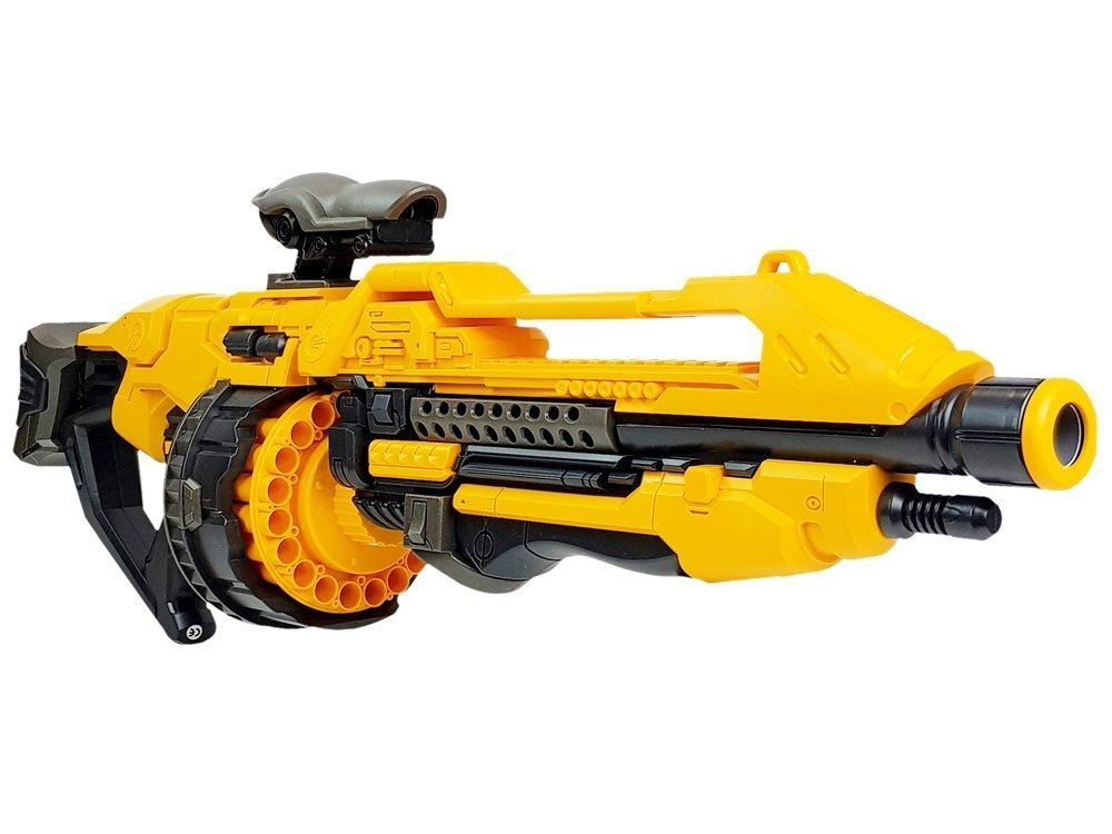 Pistolet Na Baterie Piankowe Naboje 82 cm Obrotowy Magazynek Żółty