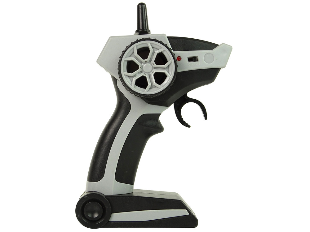 Sterowanie pojazdem odbywa się za pomocą wygodnego pilota R/C o częstotliwości 2,4 GHz, co zapewnia stabilne połączenie i brak zakłóceń podczas jazdy. Obsługa pilota jest intuicyjna – umożliwia poruszanie się do przodu, do tyłu oraz skręcanie w prawo i lewo.